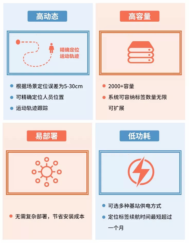 在眾多定位技術(shù)中,UWB技術(shù)具有傳輸速率高,發(fā)射功率低,傳統(tǒng)能力強(qiáng)等特點(diǎn),無(wú)論是從定位精度、實(shí)時(shí)性,還是穩(wěn)定性、容量大小等方面,UWB技術(shù)都完美的符合工業(yè)安全對(duì)定位技術(shù)的需求。工業(yè)場(chǎng)景的安全定位服務(wù),主要針對(duì)的是人員與設(shè)備,相比其他技術(shù),UWB更加適用。